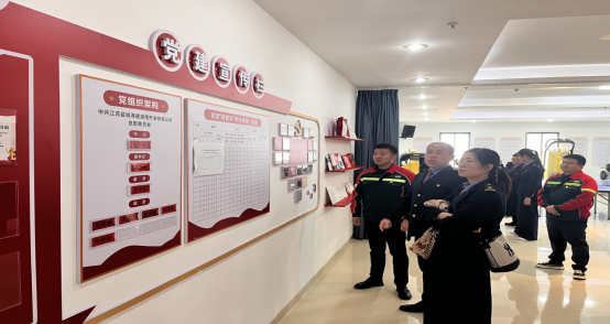 活動(dòng)最后,全體黨員集中參觀了建湖港區(qū)黨建活動(dòng)室,先后學(xué)習(xí)了不忘初心跟黨走、旗幟鮮明講政治 、強(qiáng)基固本筑堡壘、創(chuàng)先爭(zhēng)優(yōu)聚合力、正風(fēng)肅紀(jì)提效能五大篇章,黨員同志們深切領(lǐng)悟到黨建工作促進(jìn)業(yè)務(wù)工作的強(qiáng)大聚合力和向心力,對(duì)于今后進(jìn)一步拓展港鐵合作,實(shí)現(xiàn)共贏發(fā)展創(chuàng)造了無限可能。