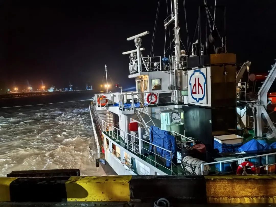 當(dāng)晚正值農(nóng)歷大潮汛,東北風(fēng)6級(jí)、涌浪2米的惡劣海況給救援帶來嚴(yán)峻挑戰(zhàn)。引航員抵達(dá)現(xiàn)場時(shí),“聯(lián)盟8”輪船頭僅剩1根倒纜受力,船體與碼頭形成60°夾角持續(xù)后漂,且涌浪過大導(dǎo)致無法登輪指揮。面對(duì)險(xiǎn)情,引航員在碼頭前沿與交管中心協(xié)同決策,果斷采取“解尾纜、控船位”的應(yīng)急處置方案。