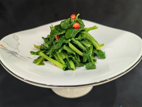 精選鮮嫩的板藍(lán)根苗作為主料,洗凈后沸水快速焯燙,恰到好處地保留了其脆嫩的口感與豐富營養(yǎng)。隨后,以秘制醬汁調(diào)味,再撒上香氣四溢的蒜末、鮮紅的辣椒絲等佐料,淋上一勺滾燙的熱油,“刺啦” 一聲,春天的味道瞬間被激發(fā),脆嫩爽滑、開胃解膩。