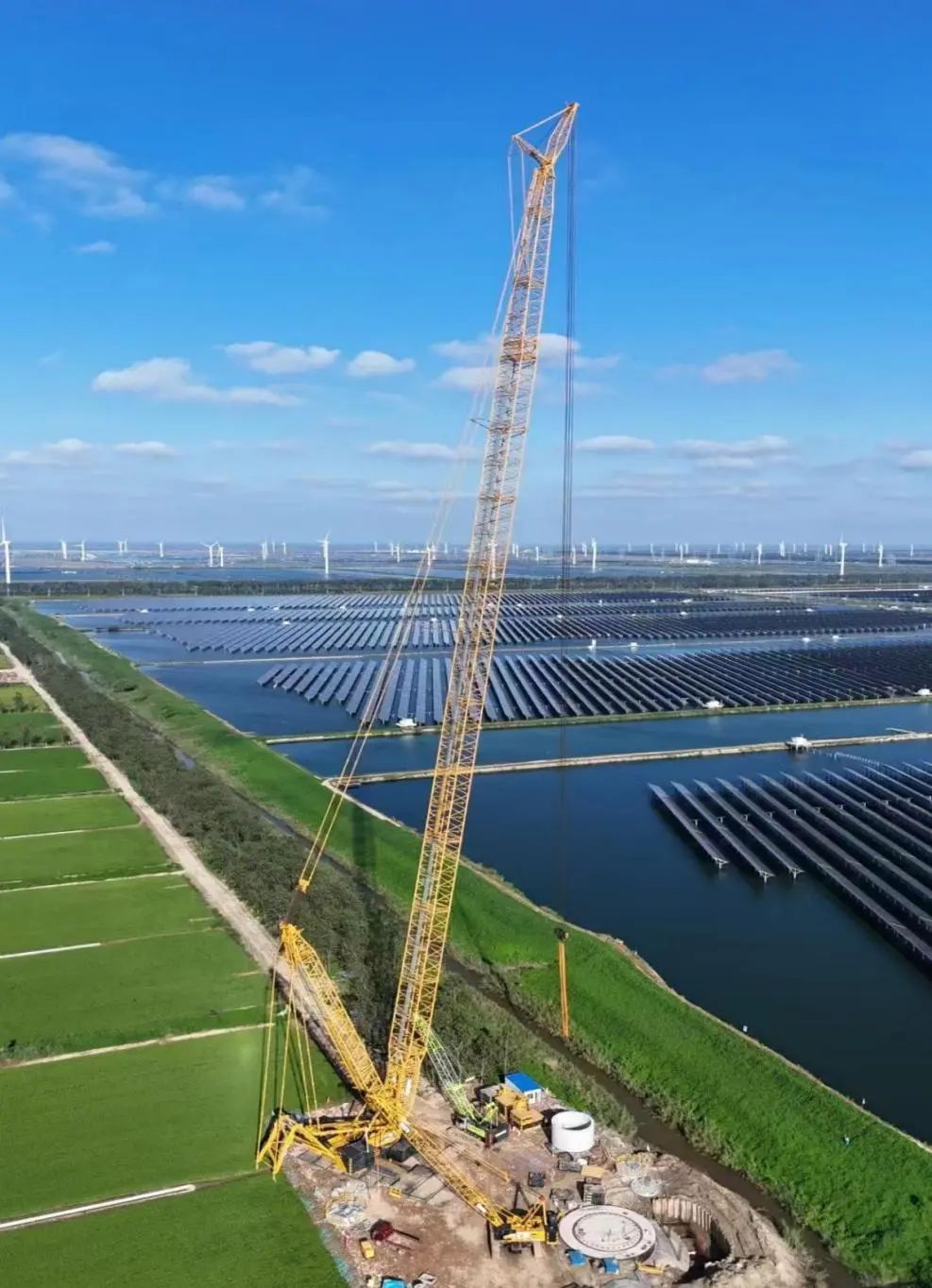 近日,在鹽城港農(nóng)業(yè)集團鹽農(nóng)華豐農(nóng)業(yè)境內(nèi),經(jīng)過3個小時的安裝、調(diào)試,隨著最后一支葉片在155米高空完美“轉(zhuǎn)體”與輪轂精準(zhǔn)對接,我國自主研發(fā)生產(chǎn)的首臺16.2兆瓦陸上單機容量最大發(fā)電機組順利安裝完成。