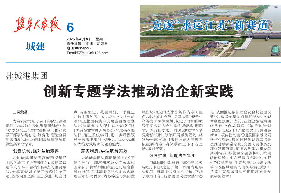 為夯實領導班子及干部隊伍法治素養,今年以來,鹽城港集團創新實施“黨委會第二議題學法機制”,推動領導干部學法常態化、制度化,營造全員學法濃厚氛圍,為集團高質量發展提供堅實法治保障。