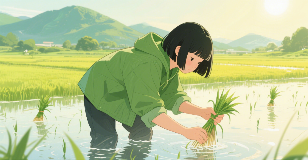 農(nóng)民伯伯會(huì)用竹竿或繩子輕輕搖晃“父本”水稻,就像搖一棵掛滿“花粉粉末”的樹!花粉就會(huì)像小傘兵一樣飄到“母本”水稻身上,完成授粉!