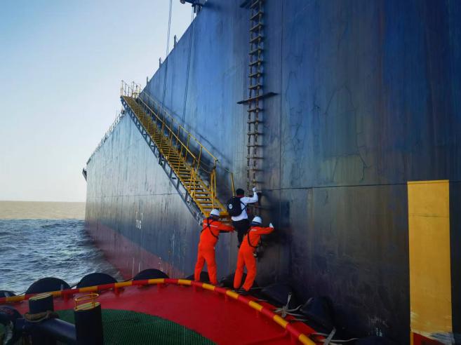 在登輪過程中,規范要求必須嚴格執行標準化操作流程。交通艇需選擇船舶平順部位停靠,避開危險區域。引航員攀爬軟梯時,須運用“三點接觸法”保持穩定,密切觀察船舶動態,謹慎攀爬。面對惡劣海況,規范要求必須果斷暫停,并可啟動直升機登輪等應急預案,堅決杜絕冒險作業。