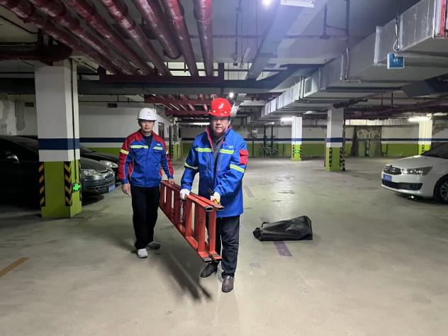 演練前期,專項動員培訓會精準劃分巡邏巡查、搶險維修、物資保障、現場協調四組網格化職責,通過典型案例解析與實操技能演示,全方位夯實全員應急處置功底。下午 3 時許,實戰演練正式啟動?!皥蟾嫦厥遥? 號地下車庫一處消防管凍裂,積水已漫至人行通道,存在結冰打滑風險!” 巡邏人員在日常巡檢中敏銳發現險情,第一時間緊急上報,同步完成現場警戒隔離。消控室即刻啟動應急響應機制,快速核實險情位置、預判影響范圍,同步調度搶險維修組、物資保障組趕赴現場,并通知客服人員做好業主信息告知工作。