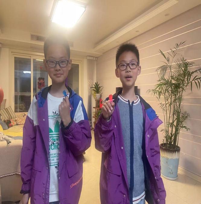 “那天,逍逍遙遙跟爸爸念叨,看中了紅色和藍色的大鉆石戒指糖,說特別漂亮,想買來送給媽媽。小家伙從爸爸那‘騙’到零花錢,興沖沖買回來在我面前晃了一圈,沒一會兒,上面的‘鉆石’就被他偷偷吃掉了。來自兒子的愛,簡單純粹,或許轉(zhuǎn)瞬即逝,卻足夠暖心。每當翻看這張照片,心里都滿是柔軟的歡喜。”
