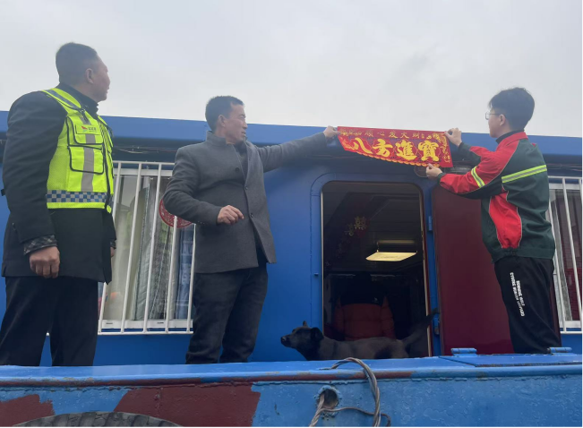 在內(nèi)河航道,往來穿梭的船舶是船民常年漂泊的“流動家園”。水上服務(wù)公司緊扣“安全、溫暖、便民”服務(wù)理念,將新春的喜慶與溫暖送到船頭,讓水上驛站成為船民的“新春港灣”。各服務(wù)站早早開展節(jié)前清掃布置,對聯(lián)高掛、窗明幾凈,工作人員攜春聯(lián)與“福”字登船走訪,與船民一同貼福掛聯(lián),讓素樸的船艙煥發(fā)出紅火的新春氣息。得知一戶船家正為女兒操辦婚事,工作人員特意登船道賀,與船家分享“雙喜臨門”的歡欣,讓水上的年味多了份別樣的溫情。