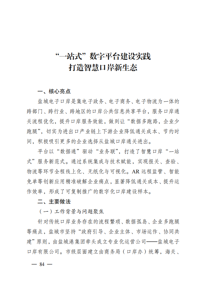 近日,市優(yōu)化營商環(huán)境工作領(lǐng)導(dǎo)小組辦公室發(fā)布《2025年鹽城市優(yōu)化營商環(huán)境優(yōu)秀創(chuàng)新實踐案例匯編(第一批)》,由市商務(wù)局、鹽城港集團聯(lián)合推送的“鹽城電子口岸一站式數(shù)字平臺建設(shè)實踐”成功入選。該平臺以“數(shù)據(jù)通”驅(qū)動“業(yè)務(wù)聯(lián)”,通過系統(tǒng)集成與技術(shù)賦能,打造智慧口岸服務(wù)新范式,為全市優(yōu)化口岸營商環(huán)境提供了有力支撐。