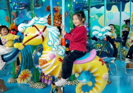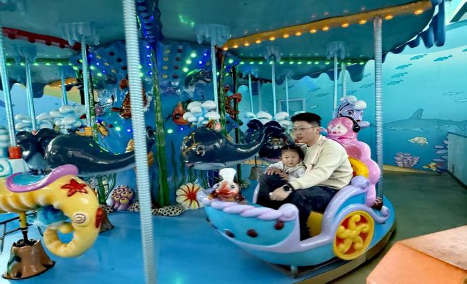 在海洋兒童樂園里,孩子們徹底放飛了天性。海盜船上,有小朋友興奮地喊道:“爸爸,我比你高啦!”,小手一邊緊緊抓著把手,一邊咯咯地笑著。旋轉木馬、小火車、過山車、碰碰車、積木房……家長們或在一旁微笑守候,或參與其中,親子間的默契與溫情,在這一方天地里悄然生長。