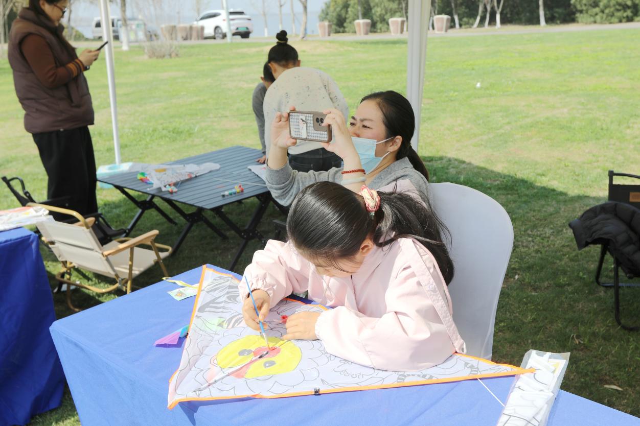 走進活動現場,春意撲面而來。主舞臺K歌區傳來陣陣歡唱,親子家庭輪番登臺參與春日K歌比賽,歌聲與笑聲交織成春日最動聽的旋律。草坪之上,孩子們手握畫筆,在空白風箏上描繪心中的春天,隨后牽著絲線在藍天白云間放飛。海風拂過,紙鳶與海浪遙遙相望,港口的春日圖景在這一刻生動定格。“孩子平時在城市里很少有機會這樣放風箏,今天在大豐港區跑一跑,感覺特別不一樣。”一位來自鹽城市區的家長說。