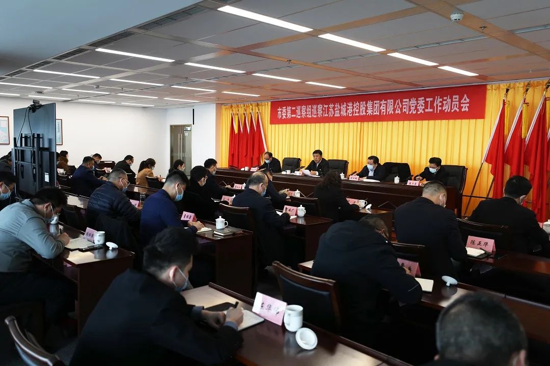 根據(jù)市委關(guān)于巡察工作的統(tǒng)一部署,2022年3月19日,市委第二巡察組巡察江蘇鹽城港控股集團(tuán)有限公司黨委工作動員會召開。會前,市委第二巡察組組長謝偉主持召開與鹽城港集團(tuán)黨委書記、董事長、總經(jīng)理周正雄的見面溝通會,傳達(dá)學(xué)習(xí)了市委副書記、市長周斌同志關(guān)于巡察工作的講話精神,通報(bào)了有關(guān)工作安排。會上,謝偉作了動員講話,對做好巡察工作提出要求。周正雄主持會議,匯報(bào)了黨委工作情況,并作表態(tài)發(fā)言。