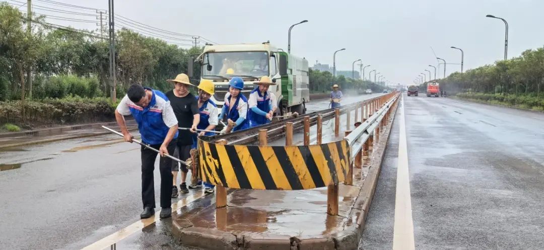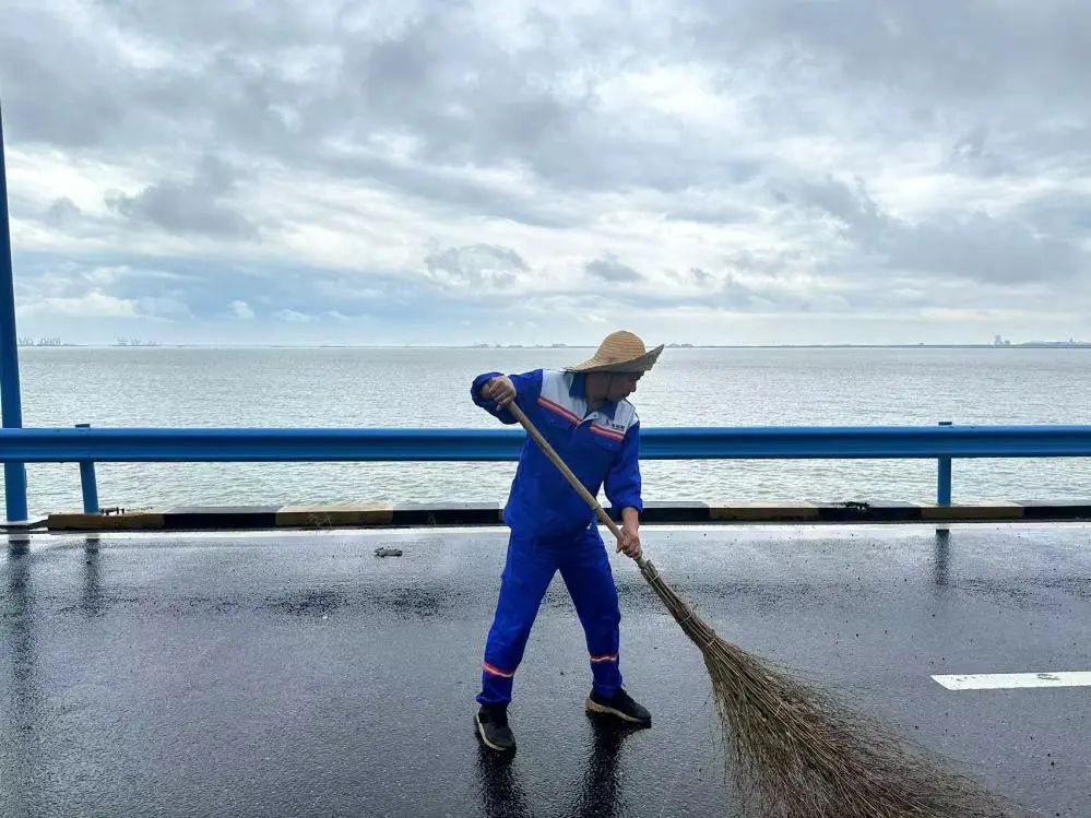 在港區(qū)的道路上,隊(duì)員們頂著烈日,清理著道路護(hù)欄和雜物垃圾。他們用“嚴(yán)真細(xì)實(shí)快”的工作作風(fēng),時(shí)刻維護(hù)著港容港貌的“高顏值”。
