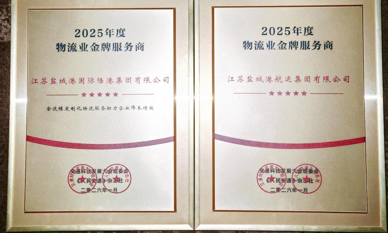 近日,在青島舉辦的第六屆中國交通科技發展大會上,鹽城港陸港集團、航運集團憑借各自的“全流程定制化物流服務”創新模式和“綠色智慧賦能多式聯運高質量發展”特色實踐,雙雙榮獲“2025年度全國物流業金牌服務商”稱號。