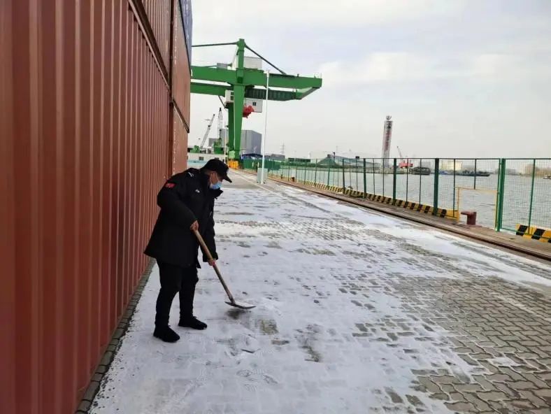 面對(duì)大雪這場(chǎng)嚴(yán)峻考驗(yàn),實(shí)業(yè)集團(tuán)物業(yè)公司全體員工堅(jiān)守崗位,嚴(yán)陣以待。在鹽城港各個(gè)港區(qū)內(nèi),各項(xiàng)目組負(fù)責(zé)人深入各物業(yè)服務(wù)點(diǎn)坐陣指揮,物業(yè)工作人員分工明確,高效清掃港區(qū)的積雪,確保路面無(wú)積雪結(jié)冰、安全通暢。