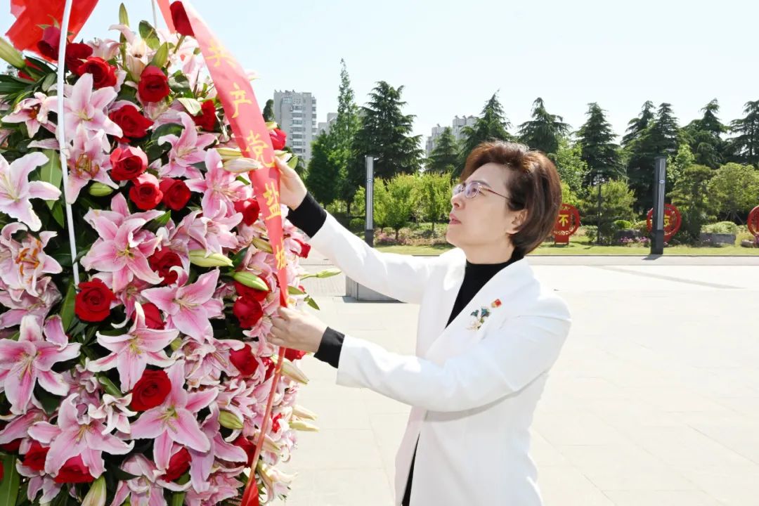 春去夏至,暖陽(yáng)照耀、藍(lán)天映襯下的新四軍紀(jì)念館莊嚴(yán)肅穆。廣場(chǎng)上,新四軍重建軍部紀(jì)念碑靜靜矗立,守望著鹽城這座英雄之城。徐纓拾級(jí)而上登上紀(jì)念碑基座,緩緩走到敬獻(xiàn)的花籃前,仔細(xì)整理花籃緞帶,并同大家一起鞠躬默哀,深切緬懷革命英烈的豐功偉績(jī)和崇高精神。