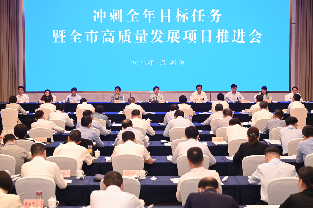 9月28日,我市在射陽召開沖刺全年目標(biāo)任務(wù)暨全市高質(zhì)量發(fā)展項(xiàng)目推進(jìn)會(huì)。市委書記徐纓主持會(huì)議并講話,強(qiáng)調(diào)要深入學(xué)習(xí)貫徹習(xí)近平總書記在省部級(jí)主要領(lǐng)導(dǎo)干部專題研討班上的重要講話精神,全面落實(shí)黨中央“疫情要防住、經(jīng)濟(jì)要穩(wěn)住、發(fā)展要安全”重大要求,認(rèn)真貫徹省委設(shè)區(qū)市市委書記座談會(huì)精神,按照市委八屆三次全會(huì)要求,主動(dòng)擔(dān)當(dāng)、敢為善為,大干當(dāng)前、沖刺全年,上下同心全力實(shí)現(xiàn)最好結(jié)果,努力為全省“勇挑大梁”多作鹽城貢獻(xiàn),著力營造平穩(wěn)健康的經(jīng)濟(jì)環(huán)境、國泰民安的社會(huì)環(huán)境、風(fēng)清氣正的政治環(huán)境,以實(shí)際行動(dòng)迎接黨的二十大勝利召開。市委副書記、市長周斌,市人大常委會(huì)主任王榮,市政協(xié)主席陳紅紅,市委副書記、統(tǒng)戰(zhàn)部部長羊維達(dá)參加。