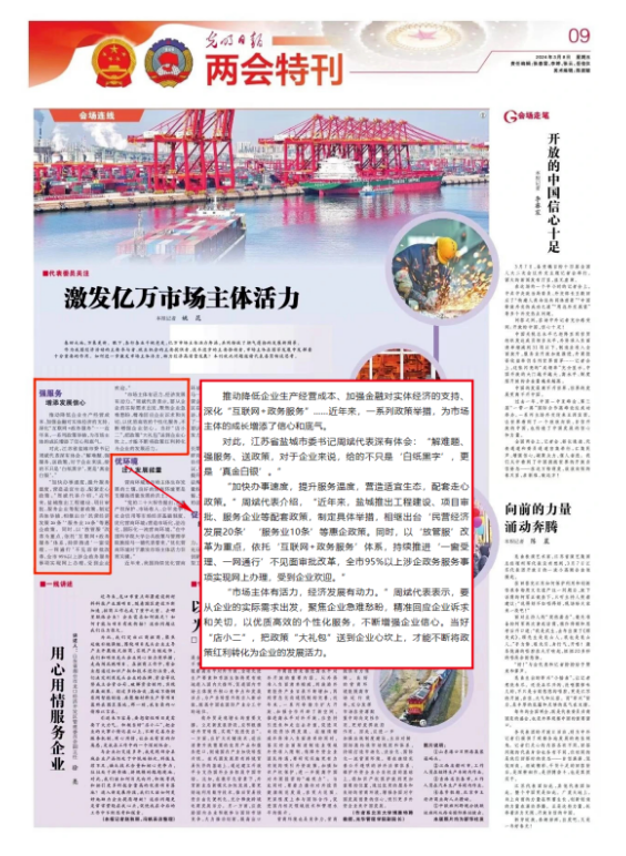 對(duì)此,江蘇省鹽城市委書(shū)記周斌代表深有體會(huì):“解難題、強(qiáng)服務(wù)、送政策,對(duì)于企業(yè)來(lái)說(shuō),給的不只是‘白紙黑字’,更是‘真金白銀’。”