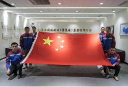 右圖:“申豐之春”班組成員與國(guó)旗合影