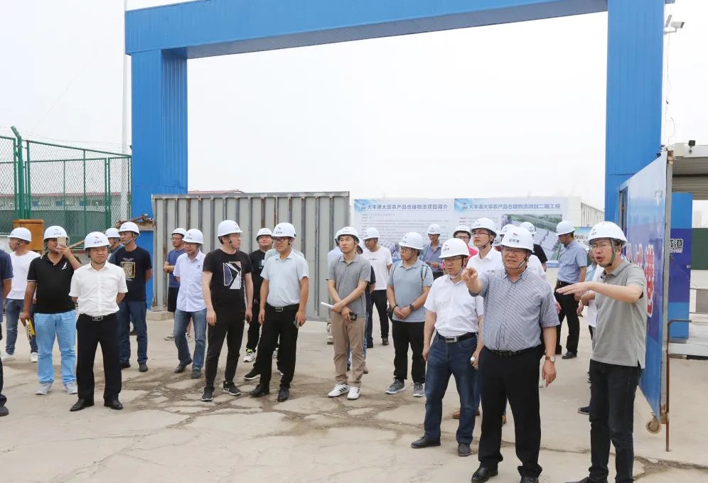 與會人員觀摩了興農大宗農產品倉儲(二期)項目工程現場,通過實地查看、聽取匯報、現場交流等方式,了解施工現場安全質量、形象進度等情況。
