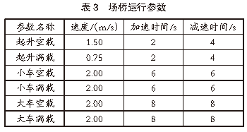 堆場仿真參數(shù):2.1 堆場布局參數(shù)港口裝卸作業(yè)區(qū)布置2個10萬噸級泊位,每個泊位配備3臺岸橋,總計6臺岸橋,編號分別為Crane 1、Crane 2、Crane 3、Crane 4、Crane 5、Crane 6。港口堆場作業(yè)區(qū)規(guī)劃有4個箱區(qū),編號分別為E01、E02、E03、E04。在堆場布置方面,E01箱區(qū)為近海側箱區(qū),E04箱區(qū)為近陸側箱區(qū),E01、E02箱區(qū)為出口箱區(qū),E03、E04箱區(qū)為進口箱區(qū)。在港口堆場作業(yè)區(qū)規(guī)劃中,將E01箱區(qū)設置為9列5層箱區(qū),E02、E03、E04箱區(qū)設置為12排5層箱區(qū),每個箱區(qū)配備有2臺場橋協(xié)同作業(yè),總計8臺場橋,編號分別為A01、A02、A03、A04、A05、A06、A07、A08。2.2 堆場設備參數(shù)港口堆場作業(yè)設備主要包括場橋、岸橋、集卡等,上述設備的運行參數(shù)即為堆場仿真系統(tǒng)的輸入?yún)?shù)。根據(jù)實際集裝箱堆場作業(yè)數(shù)據(jù),對作業(yè)設備進行參數(shù)設置。岸橋運行參數(shù)見表1,集卡運行參數(shù)見表2,場橋運行參數(shù)見表3。