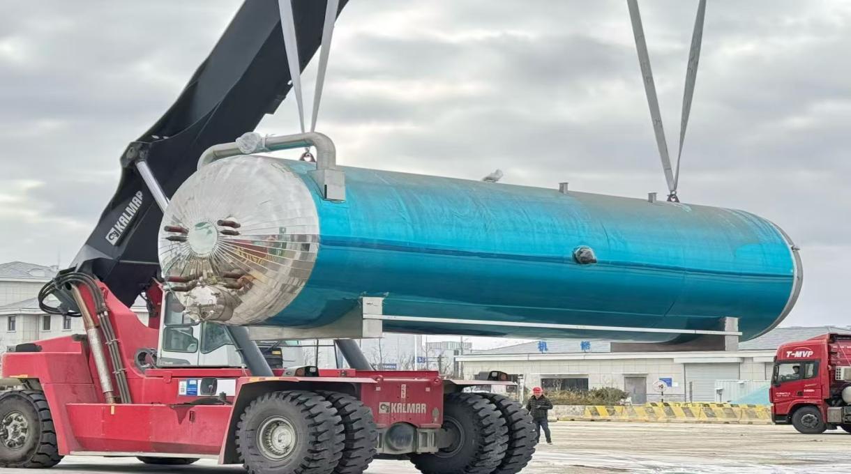?本次作業的貨物為8件大型咖啡凍干生產設備,單件重達15噸、長達12米,不僅體積龐大、價值高昂,更對裝卸過程中的平穩性與防護性提出了嚴苛要求。為確保這類“高精尖”設備安全“落戶”,亭湖港區作業團隊延續了此前處理光伏板時的“繡花式”服務理念,量身定制全流程保障方案。作業前開展針對性培訓與模擬推演;作業中精準調度重型吊裝設備,全程嚴格執行標準化流程;作業后對全部貨物進行專業油布包扎防護,實現了安全“零事故”、貨物“零損傷” 的作業目標。